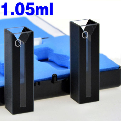 Quartz 10mm Black-Walled Micro Cuvette, 1.05ml, Standard 80, Two-way Light, PTFE Cap, Pack of Two, C102CS85