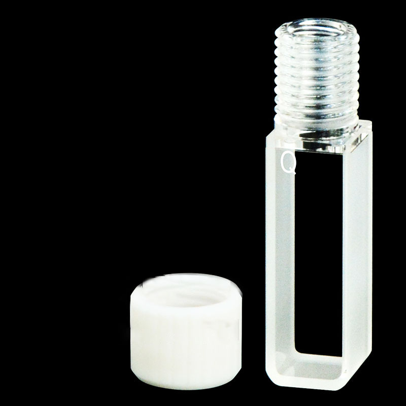 10mm Quartz Screw Cap Cuvette features a Two-Way Light path, 3.5ml volume, and complete UV sealing, ideal for specialized research applications requiring high precision and reliability.